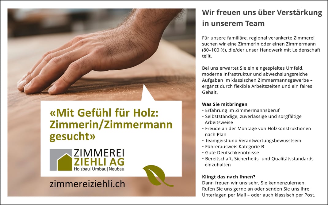 Wir sind ein familiäres Holzbau-Unternehmen in der dritten Generation. Der Werkstoff Holz ist unsere grosse Leidenschaft und gibt uns ein gutes Gefühl. Dies geben wir auch gerne unserem Nachwuchs weiter.